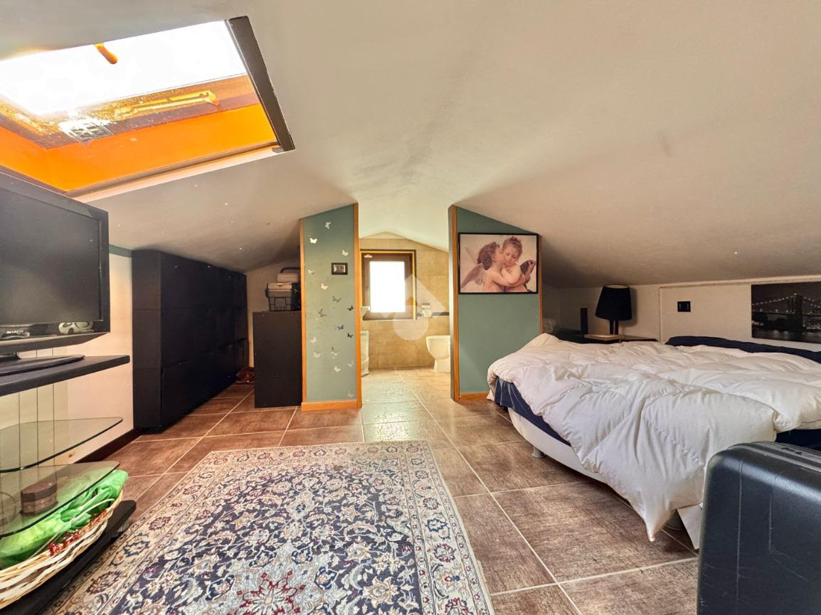 Una scala interna conduce alla soffitta praticabile, attualmente utilizzata come terza camera, ideale per chi desidera uno spazio indipendente e versatile.