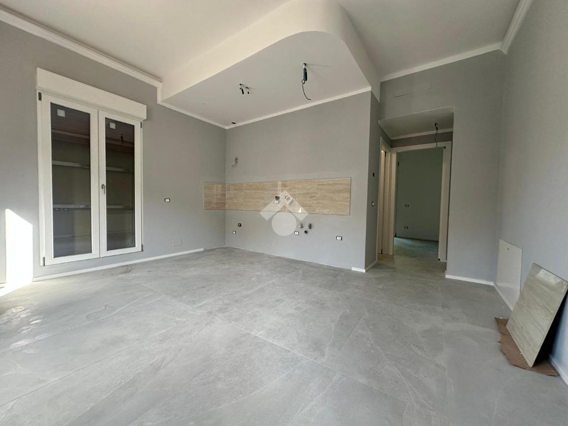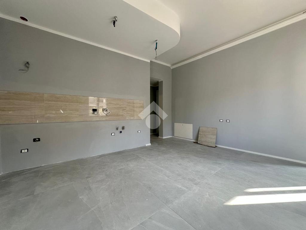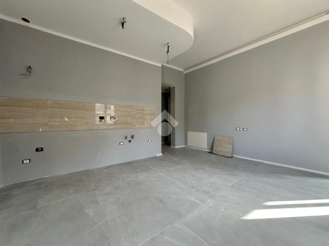 L'immobile si apre su un ampio soggiorno con angolo cottura.