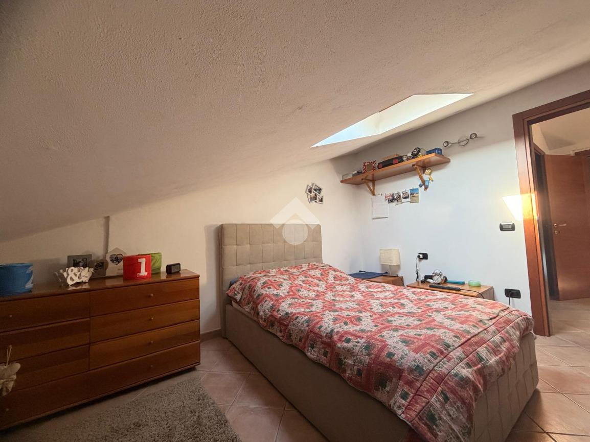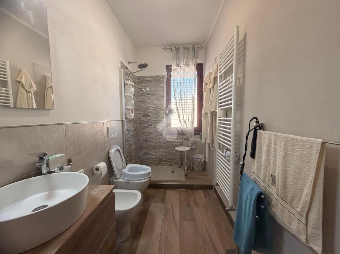 Proseguendo, un disimpegno conduce alla zona notte del piano terra, composta da una camera matrimoniale ampia e luminosa e da una camerina ben proporzionata, adatta a un bambino, a uno studio o a una stanza ospiti. Sullo stesso livello si trovano due bagni, uno dei quali finestrato, entrambi dotati box doccia.
