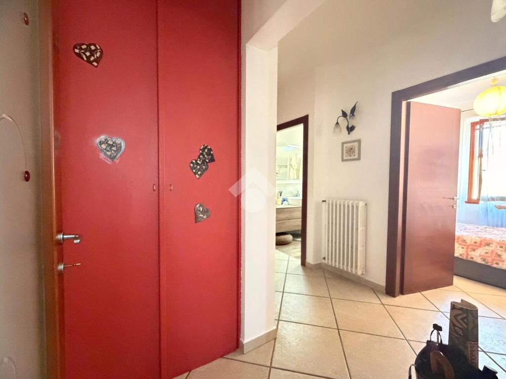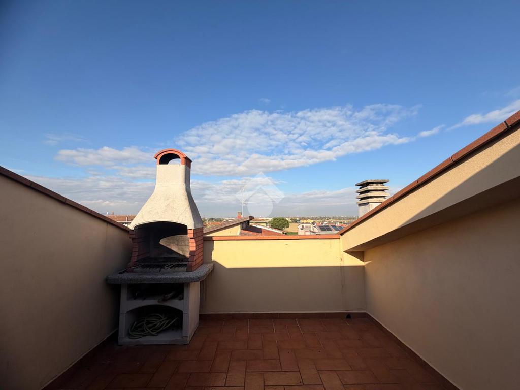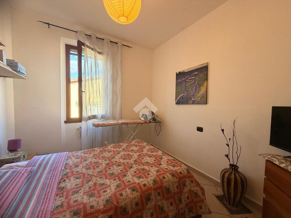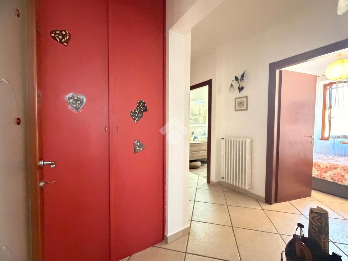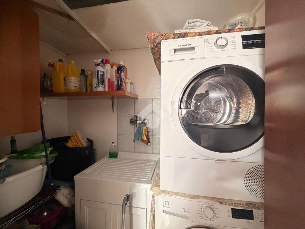 L’ingresso si apre su una luminosa zona giorno in stile open space, dove cucina e soggiorno sono uniti da un arco. Dal soggiorno si ha l'accesso diretto al terrazzo. All’interno della cucina è inoltre presente un pratico angolo lavanderia.
