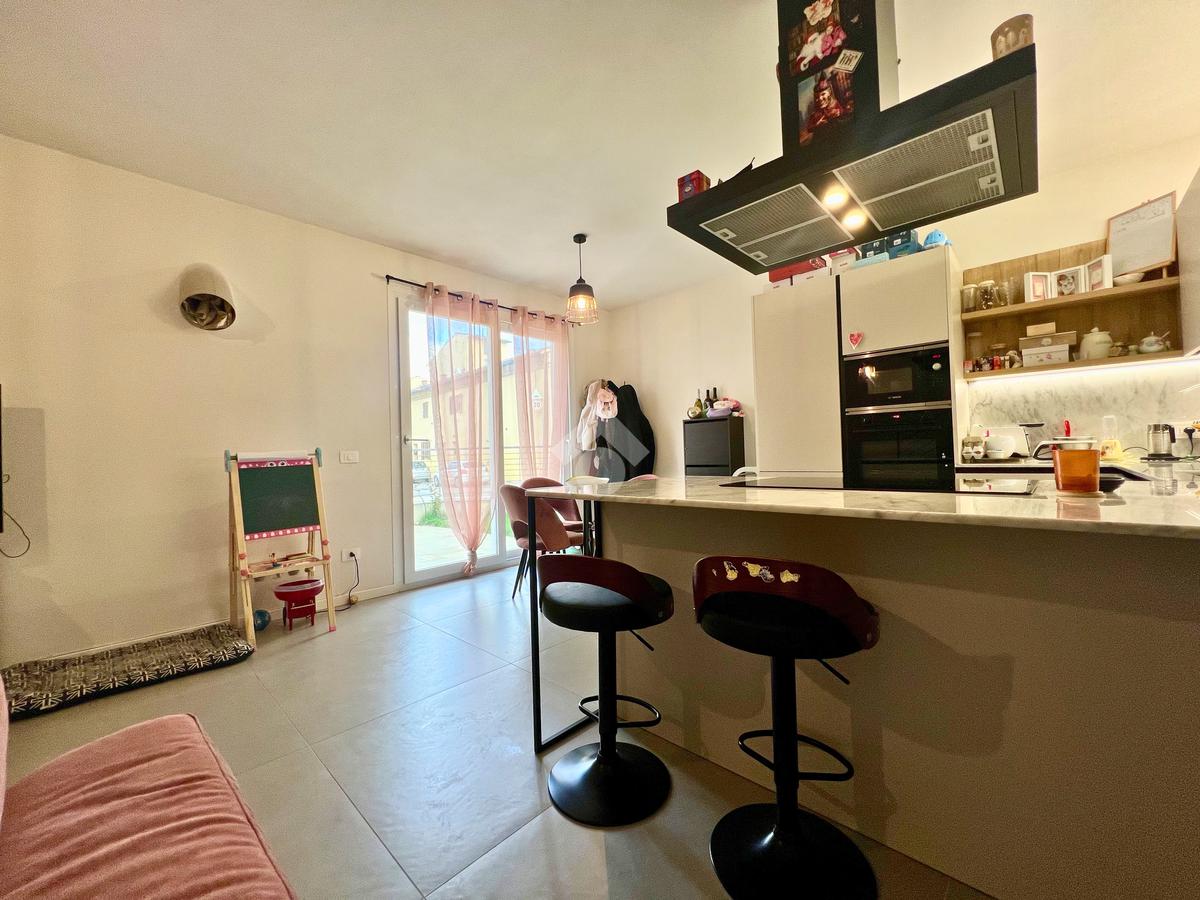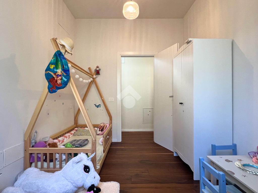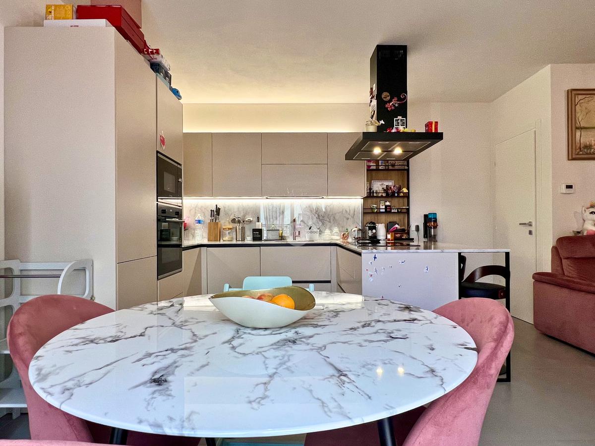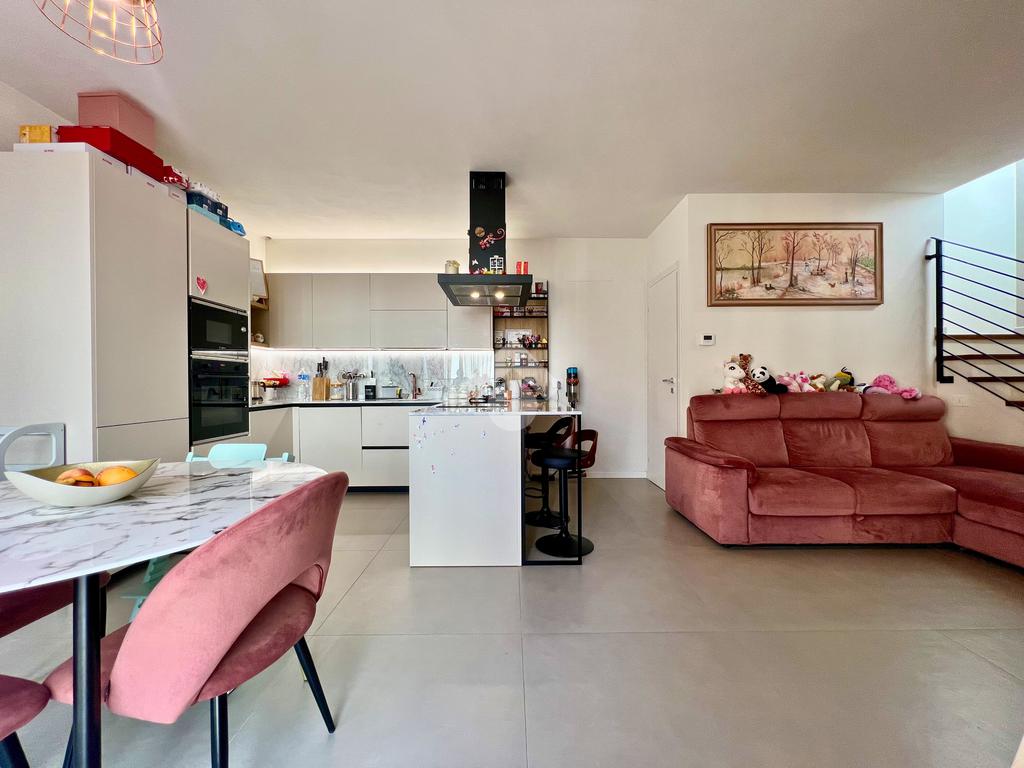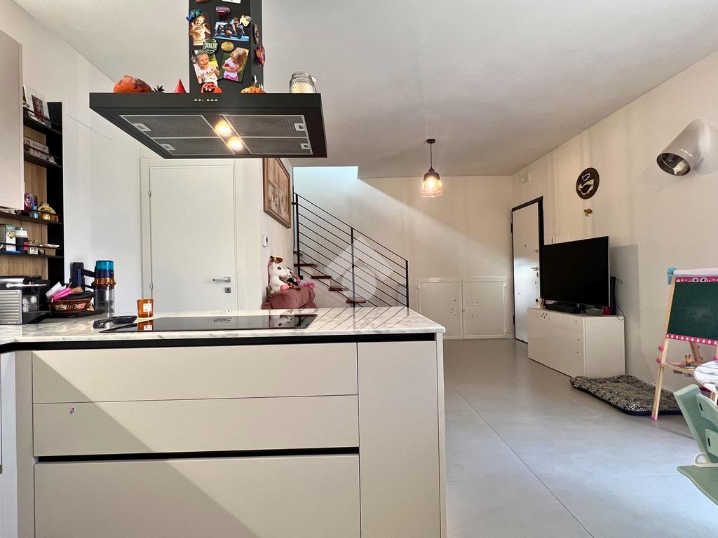 L’ingresso accoglie in una zona giorno open space con cucina e soggiorno, uno spazio moderno e conviviale, reso particolarmente piacevole dall’ottima esposizione che regala luce naturale durante tutte le ore del giorno.
